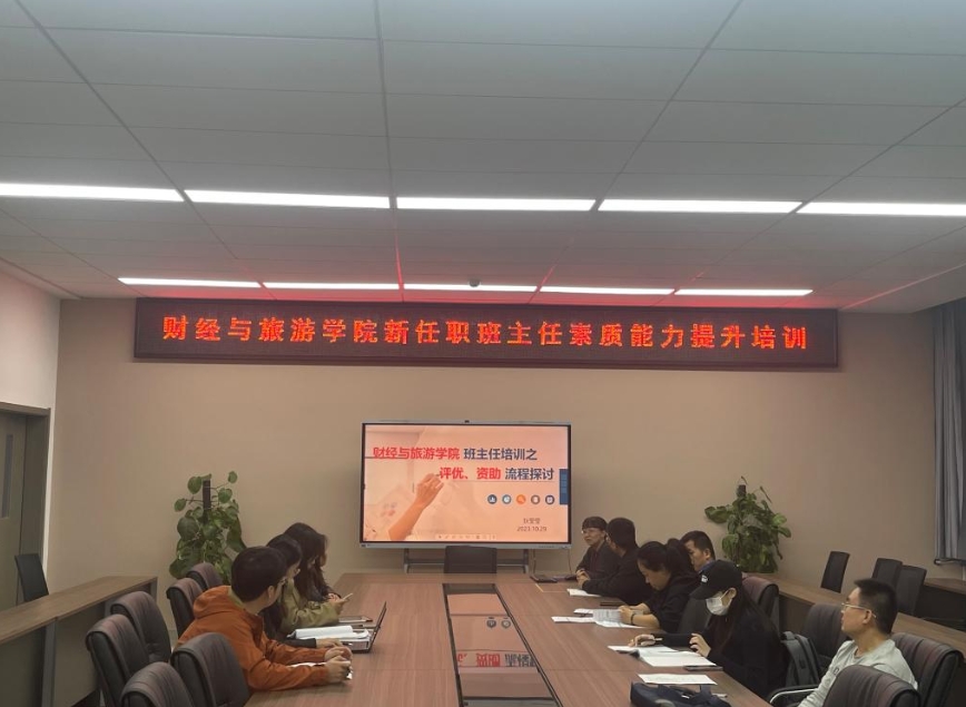 为进一步落实《新任职班主任素质能力提升培训的通知》文件精神,结合学生工作实际,11月1日下午18:30,财经与旅游学院在崇理楼D504组织开展新任职班主任素质能力提升系列培训之二——资助评优政策解读,培训由财经学工办资助专员狄莹莹老师分享。