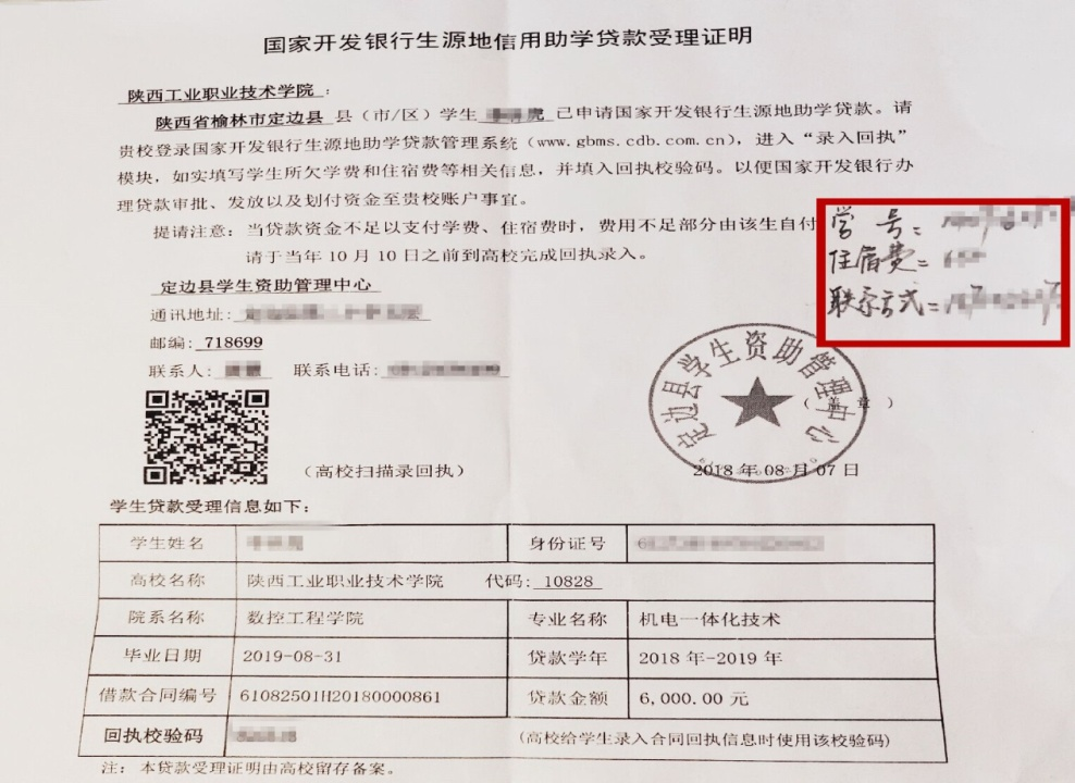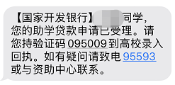 持国家开发银行及非国家开发银行短信版受理证明的同学请将页面截图并打印在A4纸上,纸质版和短信版受理证明均须标明学号、学费、公寓楼号、住宿费、联系电话,以确保贷款学生回执录入工作顺利完成。