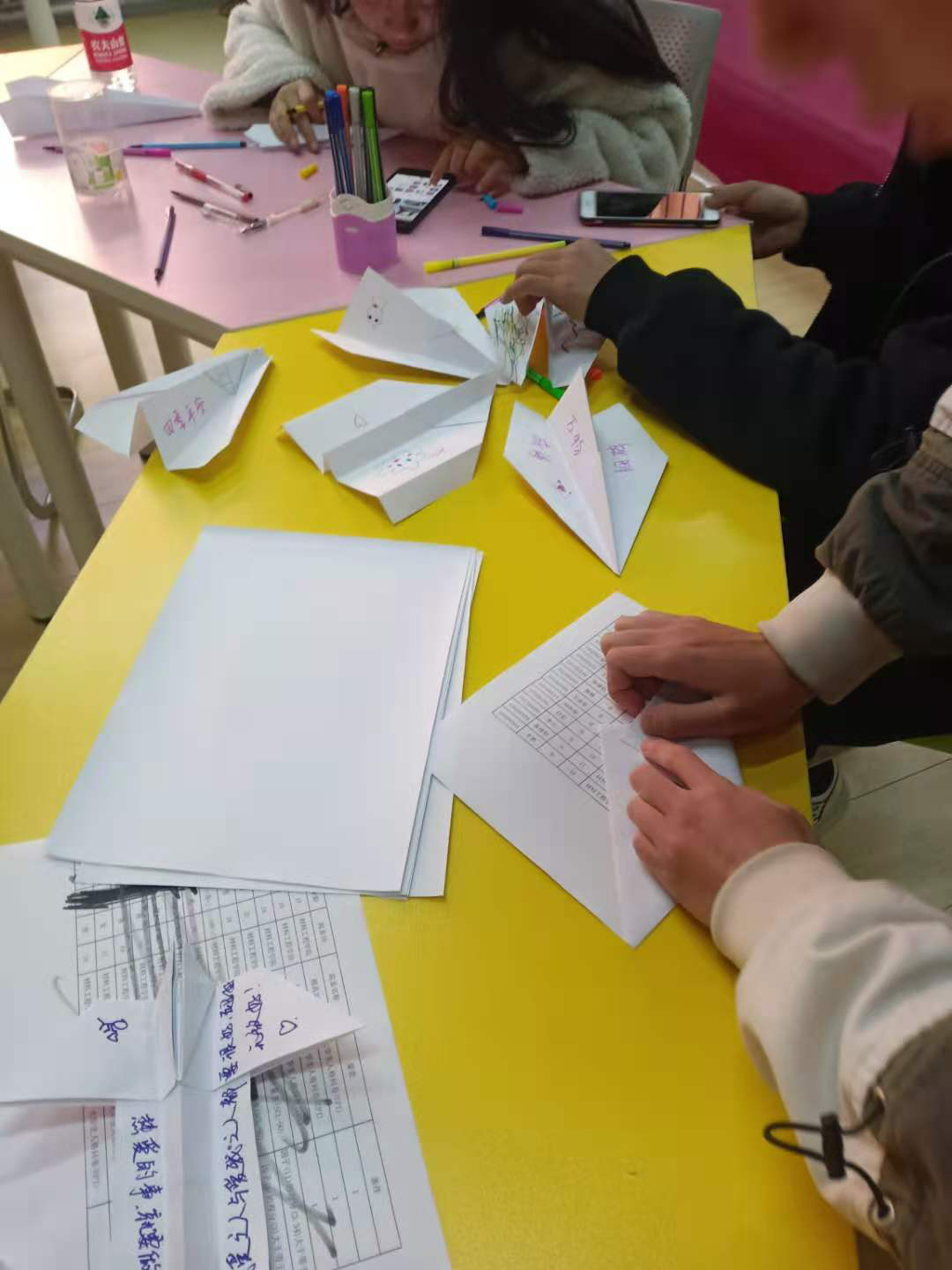 活动共分为四个项目,即烦恼自由书写活动,纸飞机大冒险,纸飞机飞行距离比赛以及花样纸飞机折叠比赛。前来烦恼书写区的同学们纷纷落笔,写下自己的烦恼或梦想,寥寥数语,抒发烦恼,挥去不意。活动中,到处是一派欢歌笑语的景象,脑力与肢体的配合,失落和惊喜的交织,练就一种不以外物而喜悲的淡然。一只只迅捷的纸飞机,或依托着笃定的理想,被放飞于天际,或搭载着无尽的苦涩,在奋力抬手的一霎,湮灭得无影无踪。活动一直持续到下午六点,许多同学参与一次还不尽兴,多次放飞纸飞机并且希望这样的活动能多举办,还有一些错过活动的同学表示了深深的遗憾。