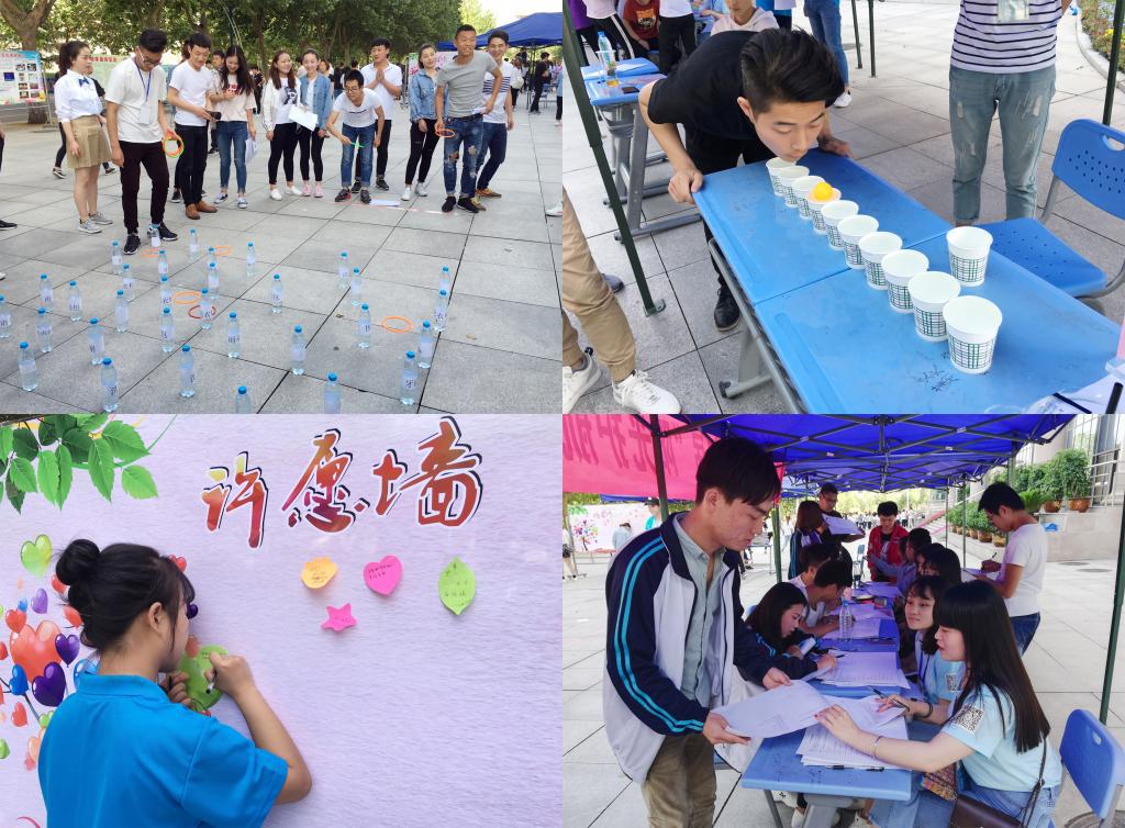 此次活动以“让学生放下压力,回到儿时的快乐"为宗旨,活动内容以80后、90后童年时常玩的游戏为主,如丢手绢、跳皮筋、打沙包、踢毽子、掰手腕、弹玻璃球等。伴随着大家耳熟能详的经典儿歌,在绚丽多彩的肥皂泡泡中,各学院的学生们纷纷走出教研室,参与到这些游戏里面来,大家三五一群,丢起了手绢,跳起了皮筋,再一次感受回到童年乐趣。通一个又一个的游戏,大家收集了不同的卡通印章,并根据印章的多少领取儿时爱吃的零食。游戏的终极大奖是自制棉花糖,举着棉花糖在海报前合影也成为一道靓丽的风景。