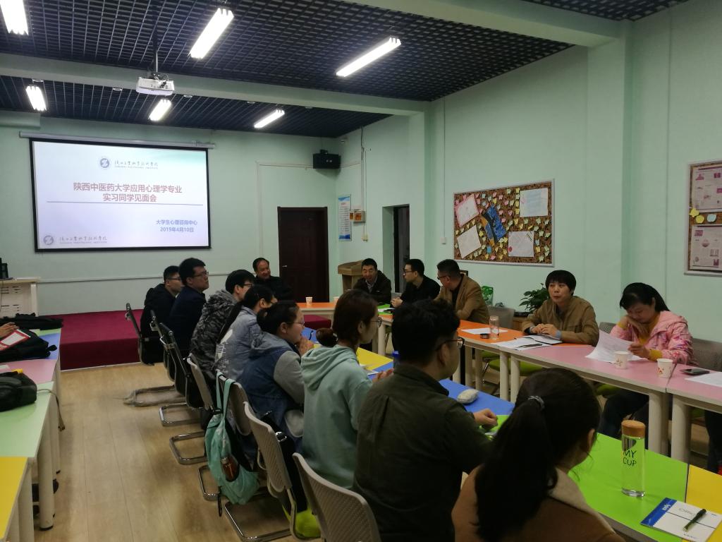 4月10日上午,我院学生处大学生心理咨询中心组织的陕西中医药大学应用心理学专业学生实习工作见面会在格物楼一楼心理咨询中心举行。大学生心理咨询中心老师、二级学院学工办主任及15名陕西中医药大学应用心理学专业实习学生参加了本次活动,见面会由心理咨询中心主任耿丽主持。