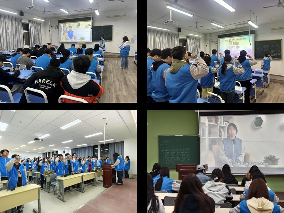 线上部分由2024级航空工程学院数控2402赵小薇同学通过视频的形式,向全校学生详细介绍了我校第十届“阳光护航”心理育人宣传季实践活动的系列活动安排,包括活动背景、主题、形式等方面进行了全面讲解,并重点介绍了本次宣传季中的特色活动和“一站一品”特色活动。通过生动的讲解和图文并茂的展示,同学们对即将开展的实践活动充满了期待。线下部分由各班级心理委员在班级内进行组织,包括进行阳光护航心理宣誓、带领同学们参加心理健康科普知识竞赛海选赛等,通过多种手段积极动员同学们参加“阳光护航”心理育人宣传季的相关活动,通过实践体验来加深对心理健康的理解,提升自我调适能力。