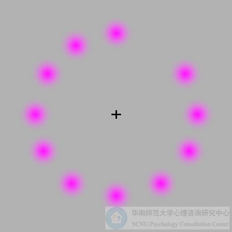 凝视下图中央的十字,如果你心无杂念,周围的红点都会很快消失。据说最快是5秒钟。