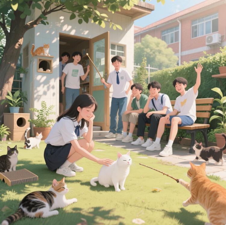 宠物辅助治疗在校园中也发挥着独特的情绪疗愈作用。校园猫屋项目成为学生们心灵的避风港。当学生与猫咪互动时,抚摸猫咪柔软的毛发、看着猫咪可爱的模样,压力和孤独感会随之减轻。猫咪的陪伴不需要复杂的语言交流,却能给予学生无条件的情感回应,帮助他们缓解情感孤独,以更积极的心态去面对现实中的亲密关系挑战。