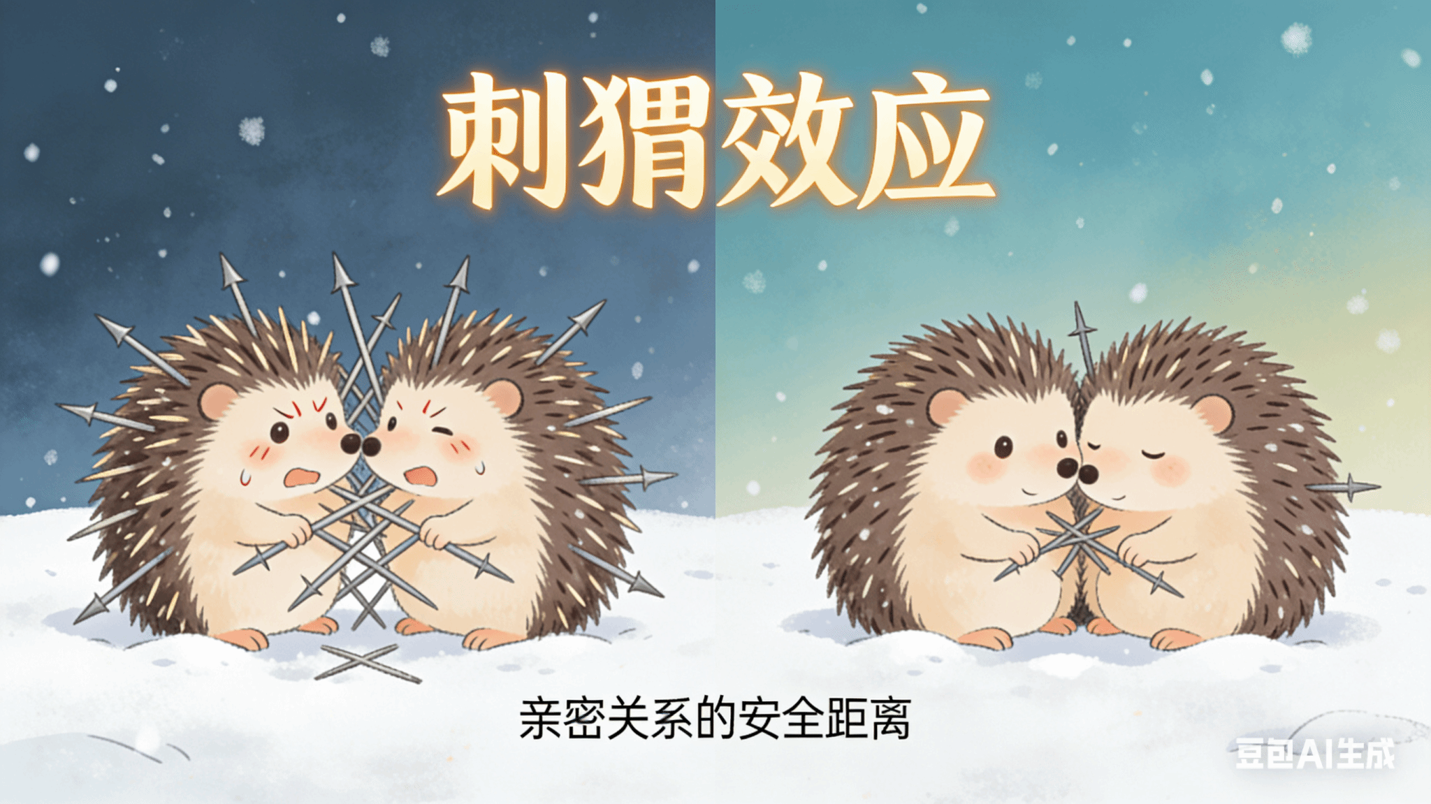 刺猬效应的起源,是一则充满隐喻的实验:寒冷的冬日里,两只刺猬为了取暖相互依偎,可身上的尖刺却让彼此遍体鳞伤;当它们下意识保持一定距离后,既避开了伤害,又能感受到对方传递的暖意。这一实验恰如其分地映射了人类的亲密关系 —— 每个人都像带着 “尖刺” 的刺猬,这些 “尖刺” 便是我们的 “心理边界”,它是自我认知、个人空间、价值底线的集合,是保护我们不被过度侵犯的屏障。