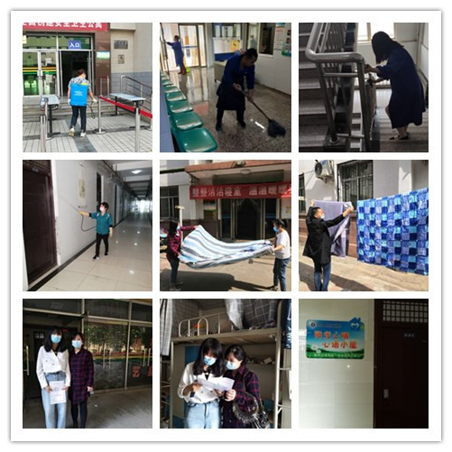 一、4月29日~30日对我院十五栋学生公寓楼的门厅、走廊、洗漱间、卫生间等公共区域进行了彻底地卫生打扫,并进行了地毯式的喷洒消毒,并在现有公共区域清洁消毒的基础上,对学生宿舍内也进行全面消毒,保证学生住宿生活环境的卫生和安全。