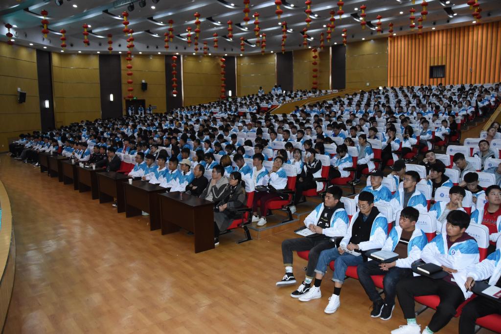 为加强学生安全教育,增强法律意识,提高学生自我保护能力,11月14日,学生处在明德堂举办主题为《学习法律知识,筑牢思想防线》学生安全教育报告会。咸阳市公安局渭城分局文汇路派出所张智刚,学工部(处)长郝军,各二级学院辅导员及学生代表1100余人参加会议,报告会由学生处副处长耿丽主持。