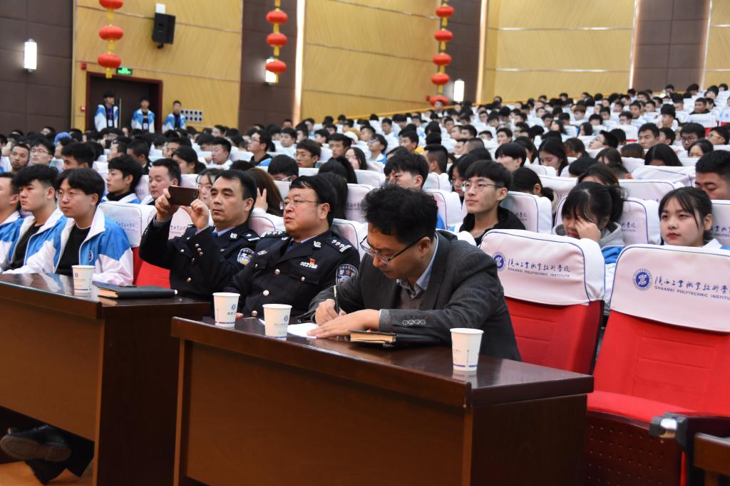 咸阳市公安局渭城分局文汇路派出所张智刚警官结合自己多年的工作实际,剖析了与大学生密切联系的法律,列举了大学生常见违法犯罪行为以及发生在高校大学生中的典型违法案例,运用通俗易懂的语言讲解了违法和犯罪的区别和联系,并进行了犯罪前后的心里状态分析,特别是对盗窃、抢劫、聚众斗殴、故意伤害、网络诈骗、校园贷、毒品危害等犯罪行为的界定和量刑进行了详细的讲解。张警官告诫同学们要遵纪守法,珍爱生命,远离犯罪,注重细节,换位思考,遇事不冲动,做一名知法守法的大学生。