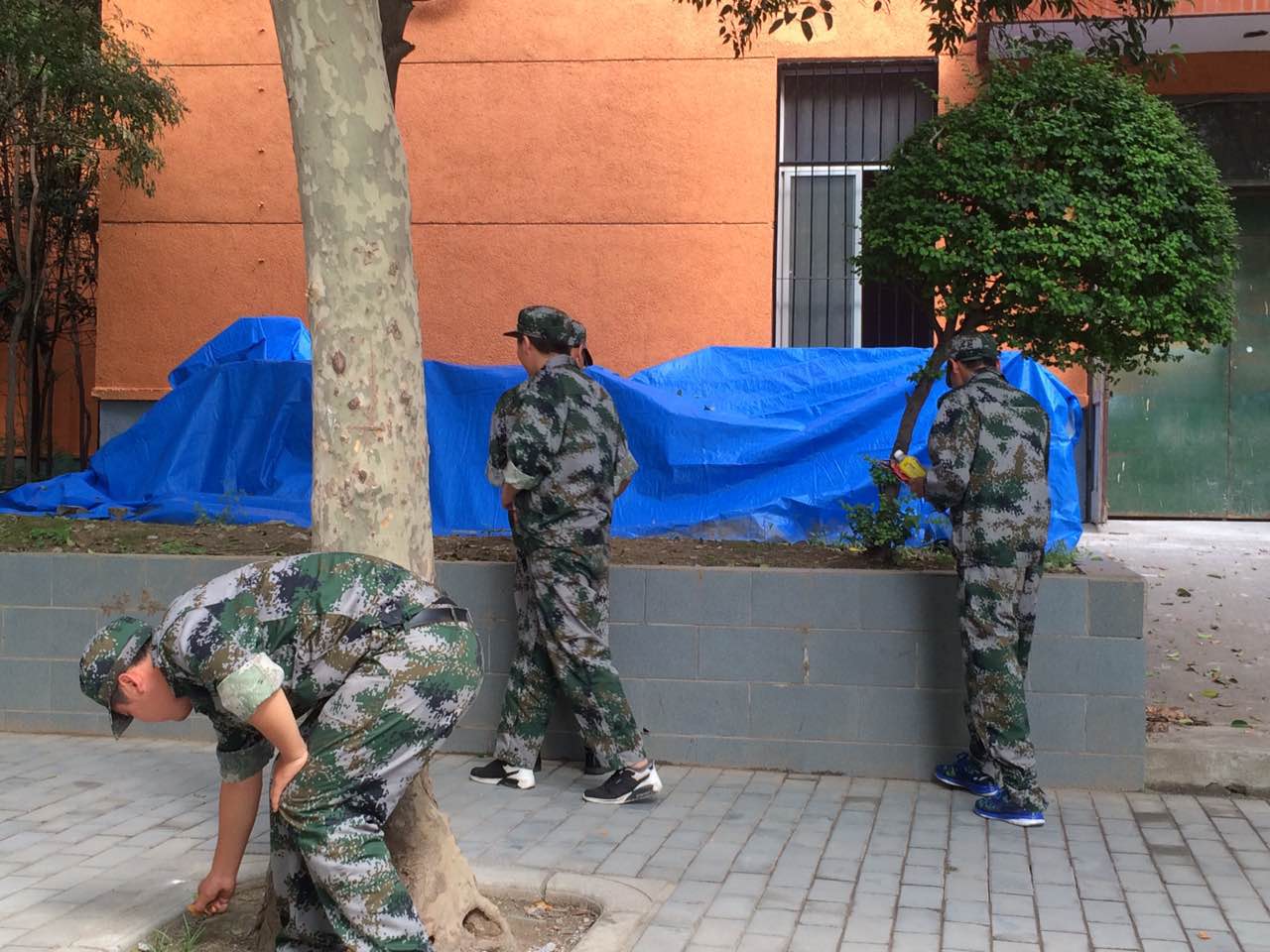 为确保咸阳市创建全国文明城市迎检工作的圆满顺利,充分展示我院风采,从9月17日开始,我院在党委副书记、副院长刘永亮的统一部署下,学工部及时组织2017级新生利用军训休息时间,对学校教学楼、校园主干道、家属区等公共区域开展野广告清理、捡拾烟头、废纸等活动。该活动为期三天,将对学校的环境卫生进行彻底清理,旨在弘扬社会正能量,净化校园教学、生活环境,积极践行社会主义核心价值观。活动中,我院2017级军训新生对健康环保有了更新的认识,对养成良好的卫生习惯起到了积极影响,同时也提高了学生自觉参与创卫的觉悟,使学校创卫宣传活动的影响力提高到一个新水平。