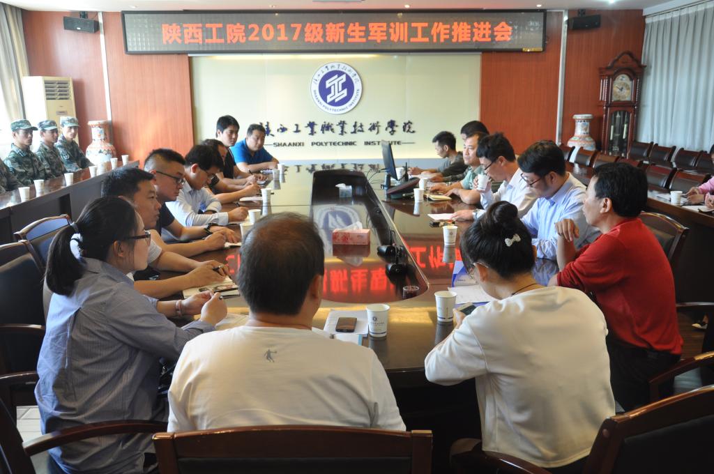9月11日上午,陕西工院2017级学生军训工作推进会在崇文九楼第一会议室举行。咸阳国防教育训练基地军训团团长闫平,学生处处长、军训团政委王超联,参谋长李明,院团委书记郝平,学生教育管理科科长王康虎,各营营长和各二级学院学工办主任及学生处相关工作人员参加会议。会议由院团委书记郝平主持。