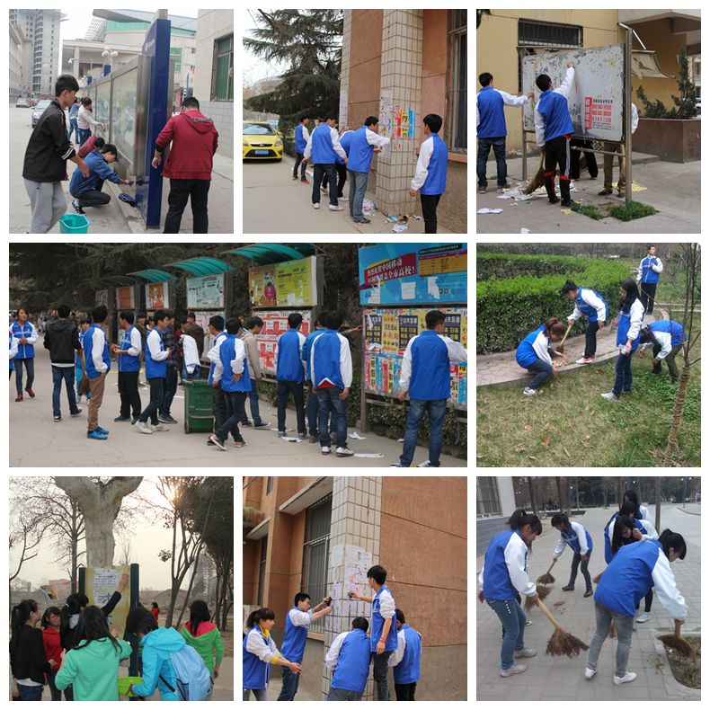 在这春意盎然的雷锋学习月里,受助大一学生在学生资助管理中心和各二级学院学工办的精心组织下,进行了图书馆整理书架和对教学楼、实训楼和公寓楼附近、过道墙壁污垢和野广告进行了清理,对宣传橱窗进行了清洗等义务劳动活动。“成大事从小事做起,爱护校园从我做起”,是我们此次活动的主题。这些看似善小的劳动,却可以集沙成塔,集腋成裘,为创建优良校风和学风、树立“奉献、友爱、诚信、互助”的好风尚,共同构建“知恩于心,感恩于行”的爱心链条。参加义务劳动的学生纷纷表示的“受人点水之恩,当涌泉相报”,同学们都很积极参与,得到广大师生的一致好评。