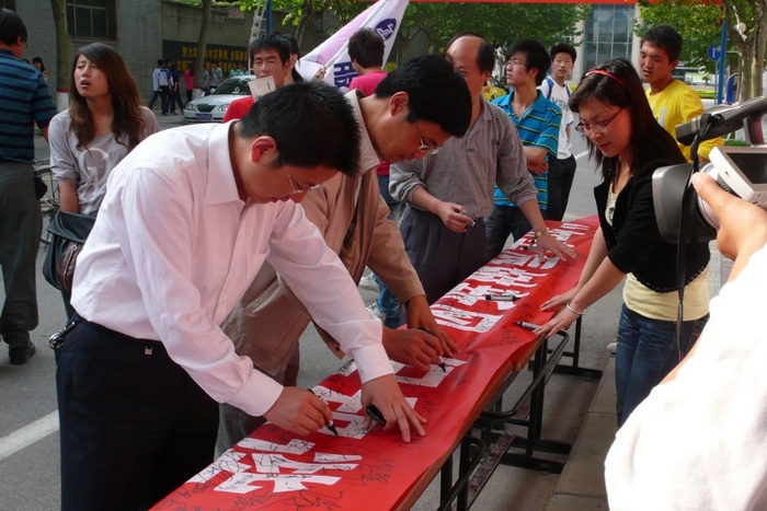 活动中,同学们踊跃参与,学生处处长王超联、团委书记闫军、学生处副处长张智清亲临签名现场指导工作,并与同学们就“感恩、诚信”主题进行了探讨与交流,现场气氛浓厚热烈,有近千名学生在“知荣辱树新风,促和谐正学风,做文明大学生”宣言横幅上郑重地签上自己的姓名,并纷纷表示:我签名,我承诺,我行动,要学会知恩感恩,诚信做人,让感恩、诚信成为生活的一种心态、一种态度。