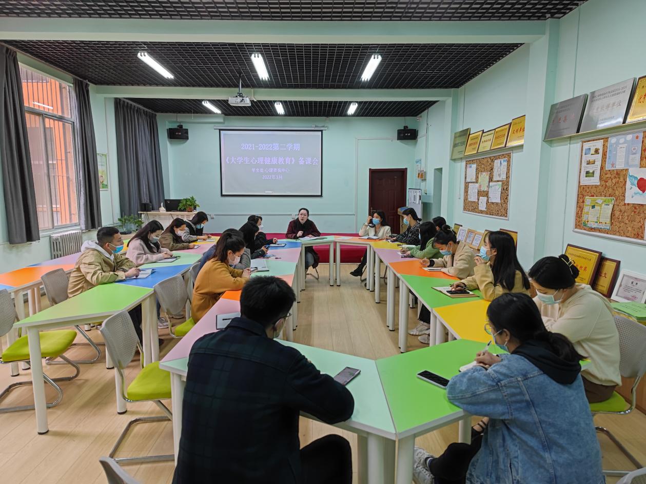 3月31日上午,为促进我校心理健康教育课程建设,提升课程教学质量,学生处心理咨询中心组织了2021-2022学年第二学期《大学生心理健康教育》集体备课会,全体任课老师参加了会议,会议由心理咨询中心主任柳林主持。