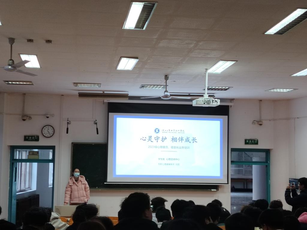 为了加强我校心理健康教育工作,完善四级心理健康教育工作网络,充分发挥班级心理委员、宿舍长在学校心理健康教育和心理危机防护工作中的作用,心理咨询中心于12月6日至12月27日期间安排专职心理健康教师分学院对全体2023级心理委员和宿舍长开展11场培训,参训学生超过900余人次,实现了班级、宿舍的全覆盖。