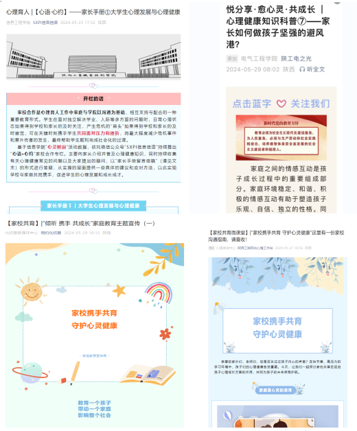 本次家庭教育主题宣传周活动,旨在引导家长树立科学养育观念,理性确定学生成长预期,关注学生心理健康,尊重学生心理发展规律。今后,学生处心理咨询中心将继续坚持深化家校合作,搭建常态化运转的家校共育平台,共同关注学生的成长,不断培养专业过硬、素质优良的时代新人。