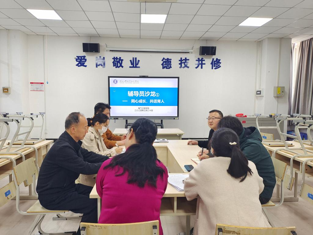 为深入贯彻落实中、省有关辅导员队伍建设的有关要求,强化辅导员队伍建设,3月20日,电气工程学院在欧姆龙教室举行“同心育人 共话成长”——电气工程学院辅导员沙龙,电气工程学院党总支书记刘其兵、全体辅导员参加会议,会议由学工办主任赵松主持。