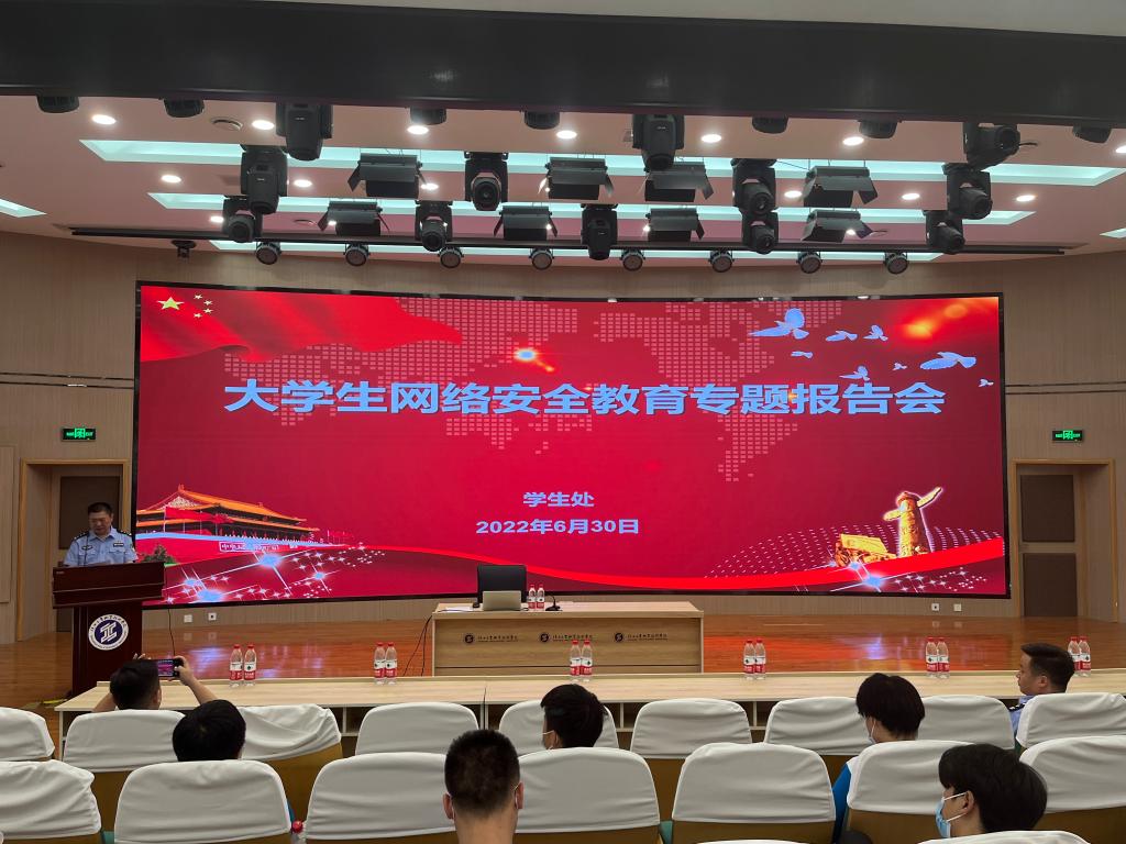 为切实增强广大学生的防诈反诈意识,6月30日,学生处邀请咸阳市公安局渭城分局文汇路派出所所长张涛和分局反诈骗中心民警王甲睿来校为广大同学作大学生网络安全教育专题报告。报告会由学生工作部(处)长郝军主持。