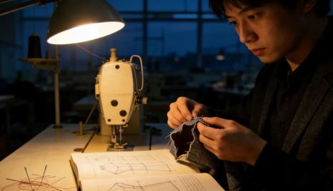 从那以后,我彻底改变了学习方式。课堂上,我不再被动记笔记,而是带着问题听课,遇到不懂的结构原理便追着老师请教,弄懂每一个工艺细节背后的缘由。课后,实训工坊成了我的常驻地,我将课本上的经典版型拆了又缝、缝了又拆,反复对比不同裁剪方式带来的版型差异;主动找身形不同的同学测量数据,对照标准尺码表调整优化,慢慢摸索出适合同龄人的版型技巧。