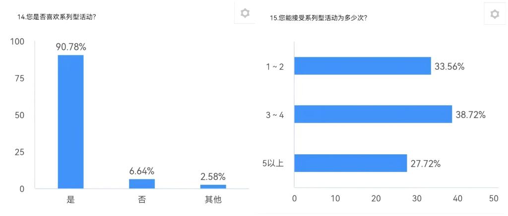 调查结果显示,虽然大部分同学对课外活动持积极态度,并认为其必要性较高,但仍存在部分同学因时间冲突、兴趣缺乏等原因不愿参与。此外,参与活动的动机多样,既有为了获取学分的实用考虑,也有希望丰富课外生活和提升自我的内在驱动。通过这些数据,我们可以更清晰地了解当前课外活动的现状及其改进方向,为未来的活动规划提供更具针对性的建议。