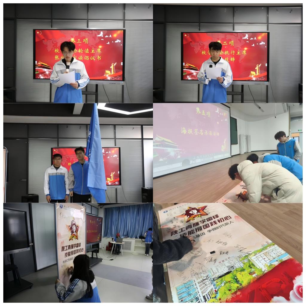 学生会办公室主任张欣龙带着大家一起宣读倡议书,希望我们做到以下几点:播撒爱心,做乐于助人的践行者;担当尽责,做敬业奉献的传承者;崇尚节俭,做艰苦奋斗的倡导者;积极行动,做志愿服务的参与者。让我们携手共进,让雷锋精神融入日常,化作习惯,书写新时代的雷锋故事。雷锋精神永相传,旗帜引领新征。激发了参与者对雷锋精神的传承热情,鼓励他们积极投身公益活动,营造良好的社会风尚。