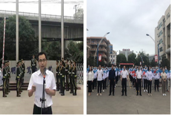每周星期一清晨,风雨无阻开展升国旗仪式,学校领导、教师代表、各二级学院学生代表共同参加。定期开展“国旗下的演讲”主题教育活动,将国防教育,爱国教育常态化经常化展,教育学生“爱党、爱国、爱社会主义”,持续增强爱国热情和国防观念。