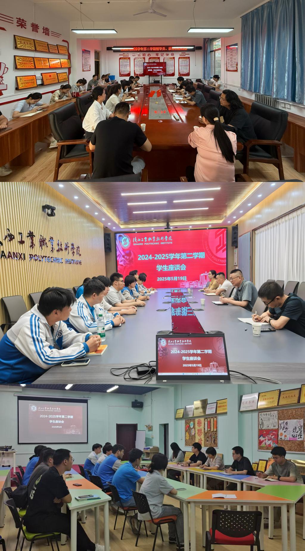 根据《关于开展2024-2025学年第二学期学生教育管理期中检查工作的安排》,学生处于5月19日分别在渭城校区、经开校区召开了学生座谈会,5月20日召开了辅导员、班主任座谈会,二级学院辅导员、班主任代表、学生代表,以及学生处相关科室负责人等70余人分三场进行了座谈。