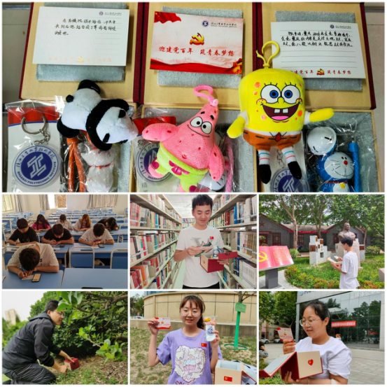此次活动在前期准备阶段,由同学们自己将学习到的党史小知识写在卡片上,每一张小卡片都承载着中国共产党百年红色记忆。同学们在用笔写下党史知识的同时,也在从党史中汲取磅礴的精神力量,将其融入自己的血脉。盲盒中放入的校徽挂件、党旗贴纸、精美小礼物也向工院学子送去对建党百年最诚挚的祝福。在学生处微信公众号进行了活动推送预告后活动正式开始,分别于5月27日早上10点和5月31日下午4点进行了两轮盲盒的投放,许多同学一看到活动通知便积极地参与到寻找“党史盲盒”的队伍中来,激发出了同学们空前的学习热情。找到盲盒的同学自豪的将党旗贴纸贴在自己的胸前和脸上,认真阅读学习党史知识。当中不乏有学生预备党员表示,此次活动给了自己很大的激励,以后会继续加强理论学习。同学们认为在寻找“党史盲盒”的过程中,既参与了游戏,又可以学党史,十分有意义。